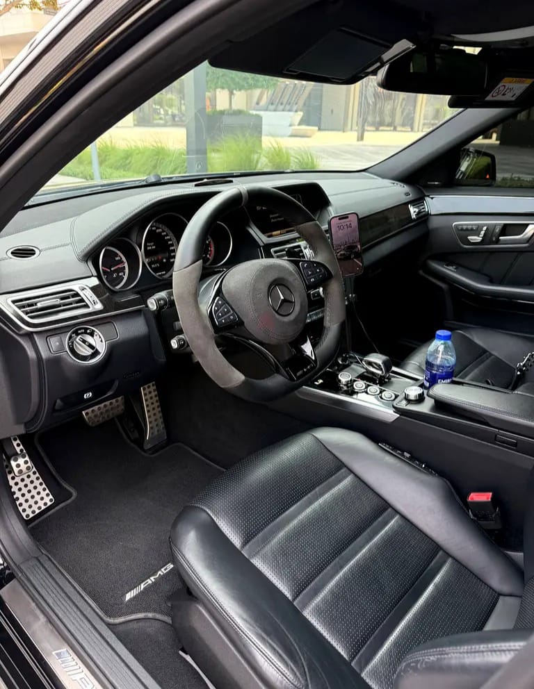 سيارة Mercedes-Benz E63 AMG موديل 2014 مع AMG Performance Package بحالة نادرة جداً (Mint Condition)، تجمع بين القوة الخارقة والفخامة المطلقة. سيارة رياضية فاخرة بمحرك قوي وأداء استثنائي، مع استخدام نظيف وعدد كيلومترات منخفض.