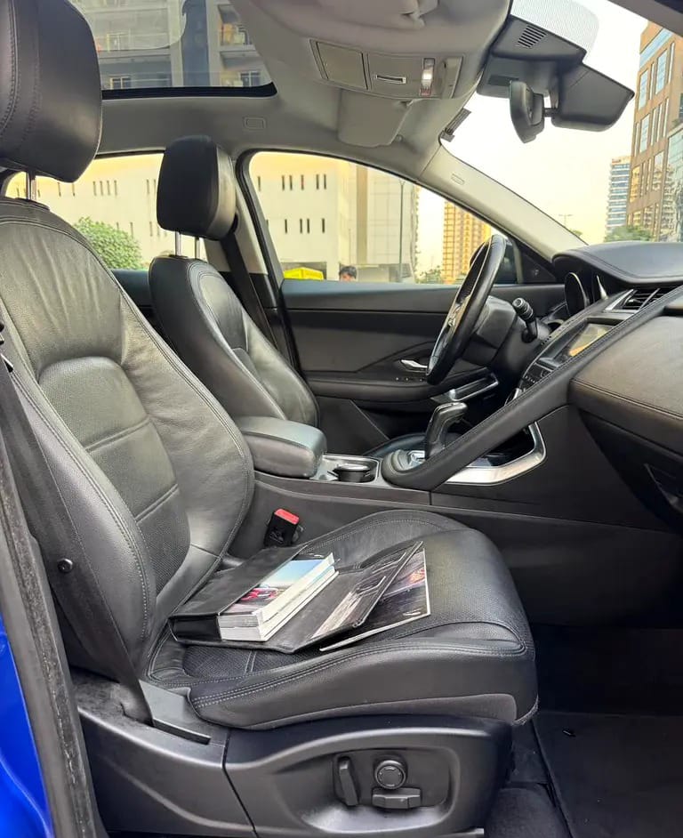 جاكوار E-Pace SE 2018 لون أزرق ملكي، سيارة نظيفة جداً ومجهزة بالكامل، مواصفات خليجية، بدون حوادث كبيرة، بحالة ممتازة وجاهزة للاستخدام فوراً بسعر لقطة أقل من السوق 🚗✨