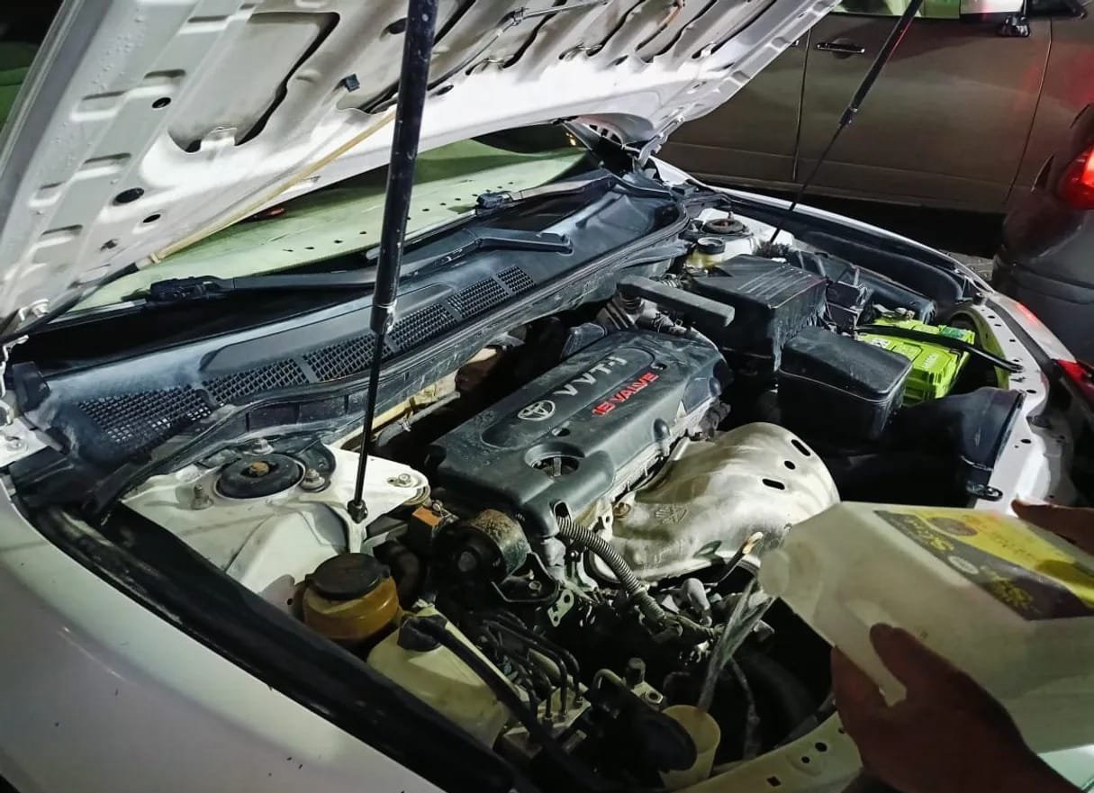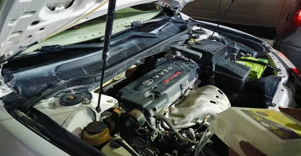 Under the bonnet, usually at the front or back