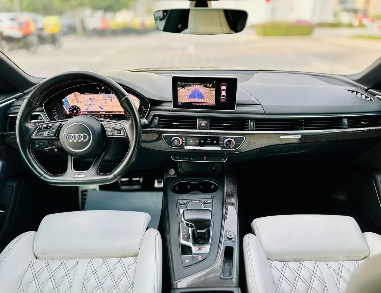 • Rearview camera + parking sensors