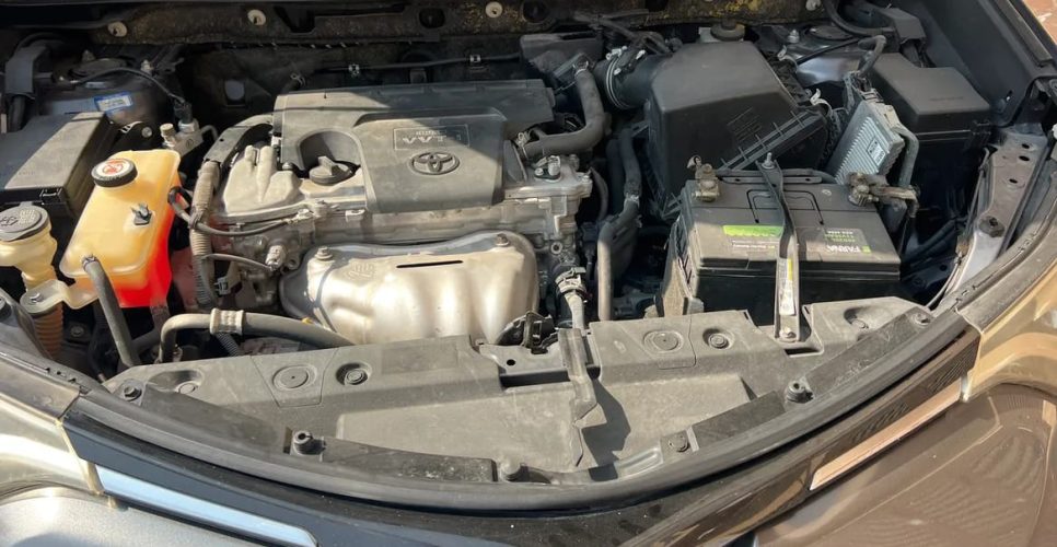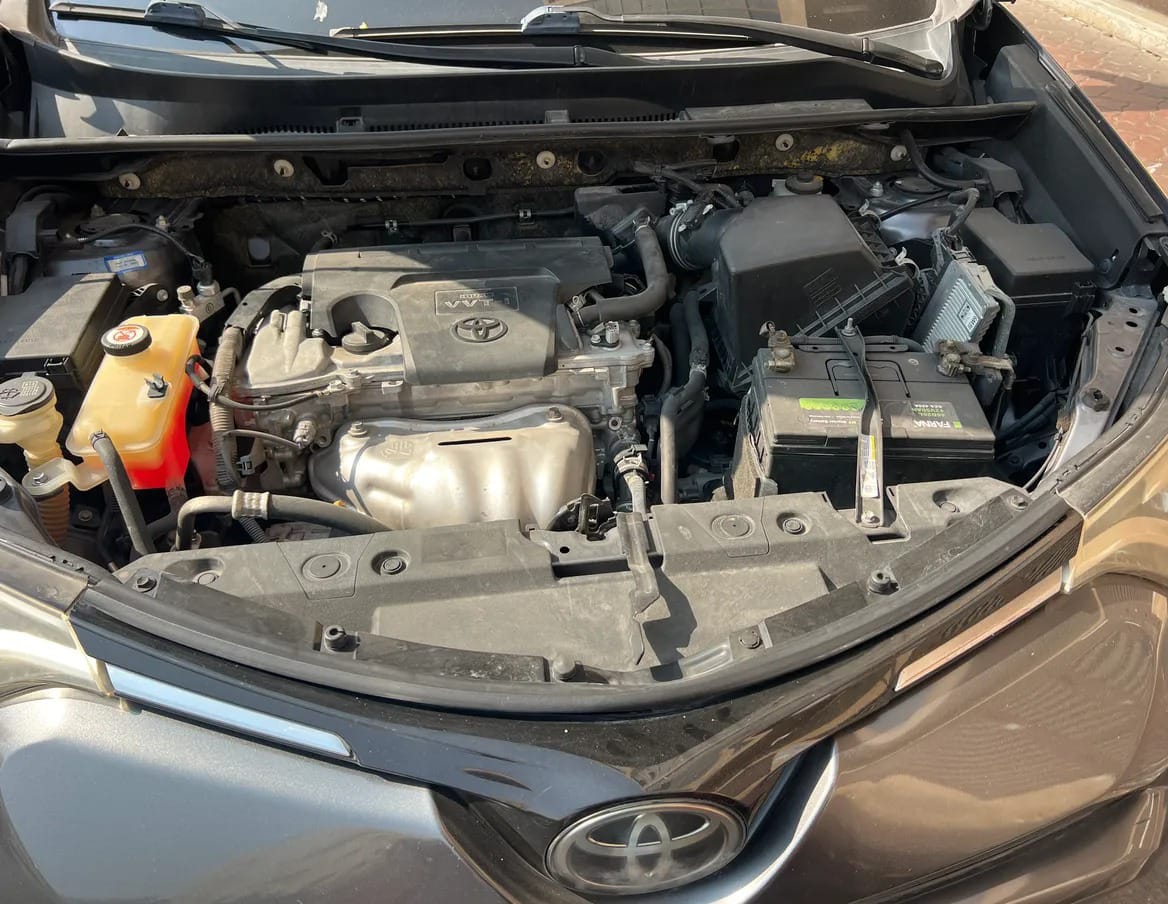 Under the bonnet, usually at the front or back