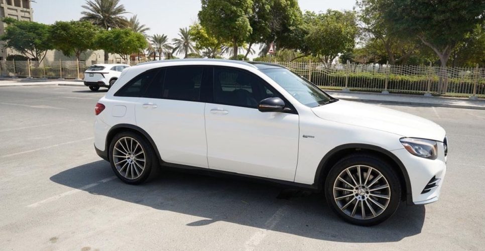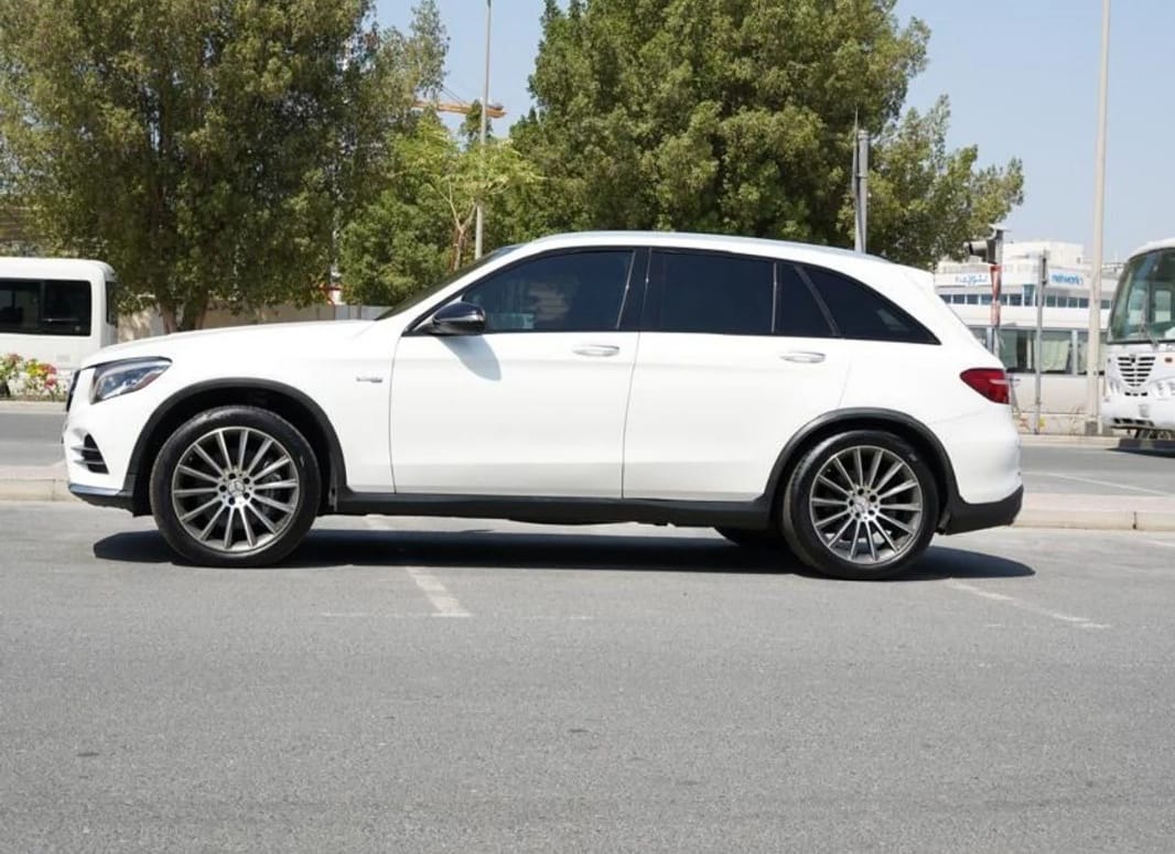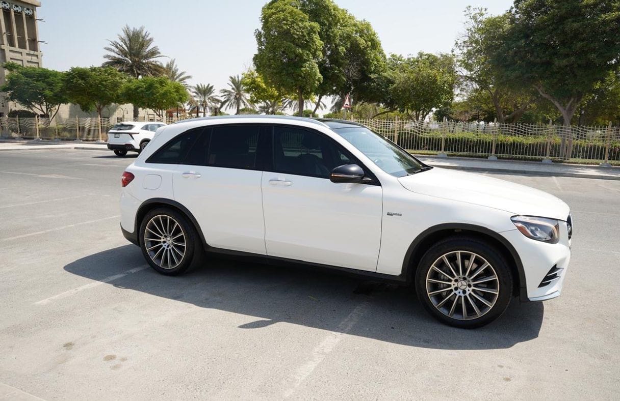 2019 Mercedes-Benz GLC 43 AMG 4-Matic, white exterior with elegant black leather interior, immaculate inside and out. Fully equipped: panoramic roof, luxury features, and unparalleled comfort. 367 hp 3.0-liter twin-turbo V6 engine, brand new tires and brakes. In excellent condition. Buy now and drive.